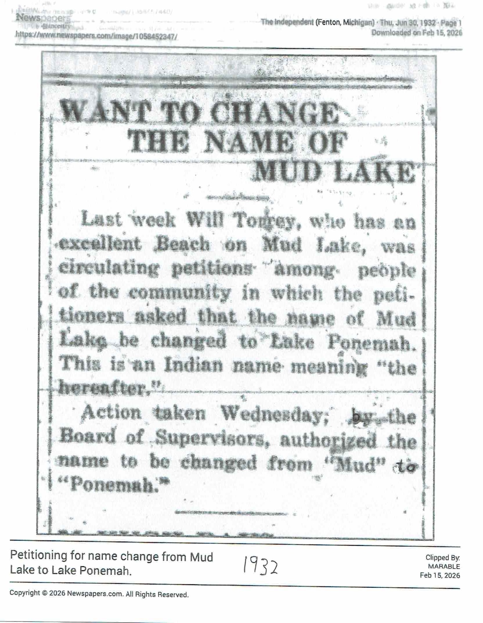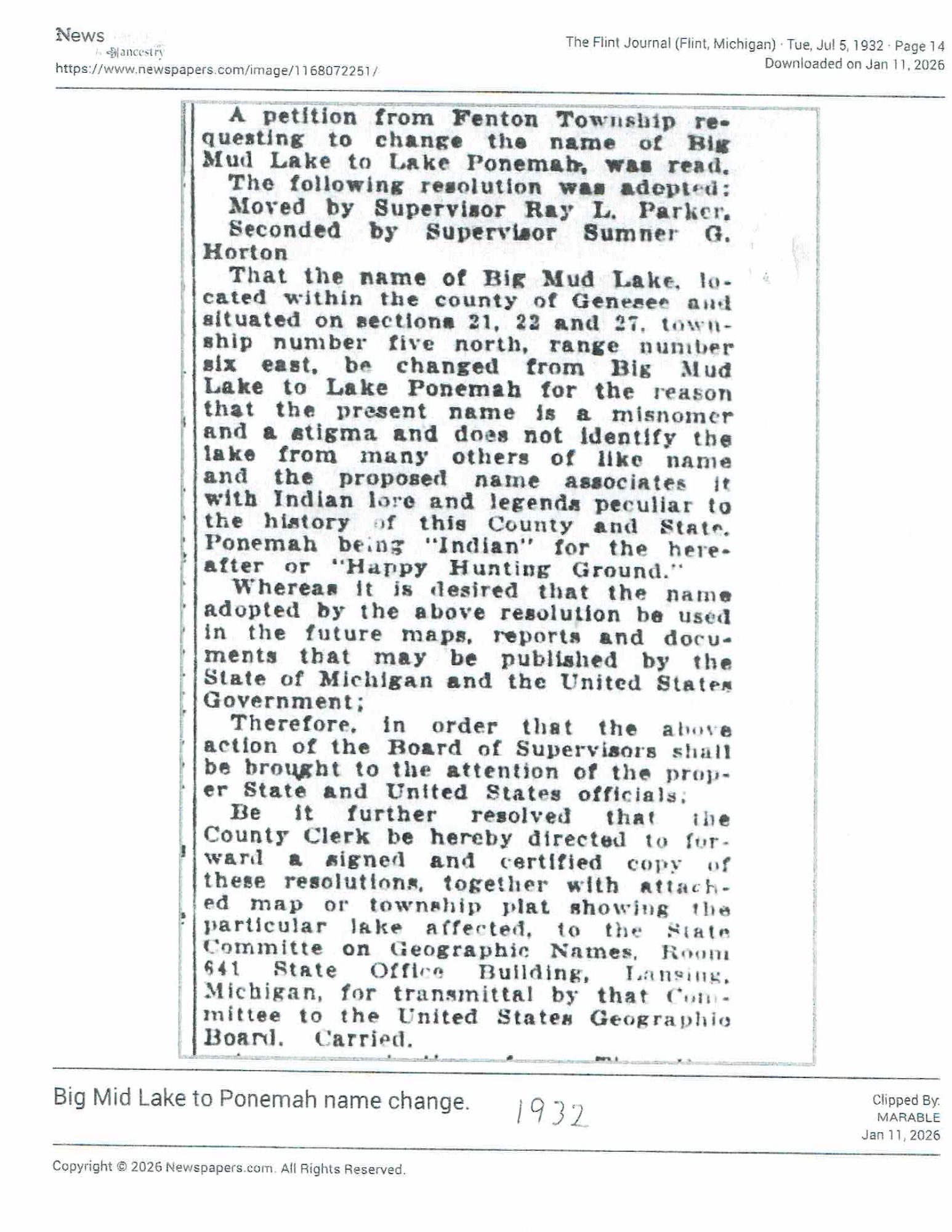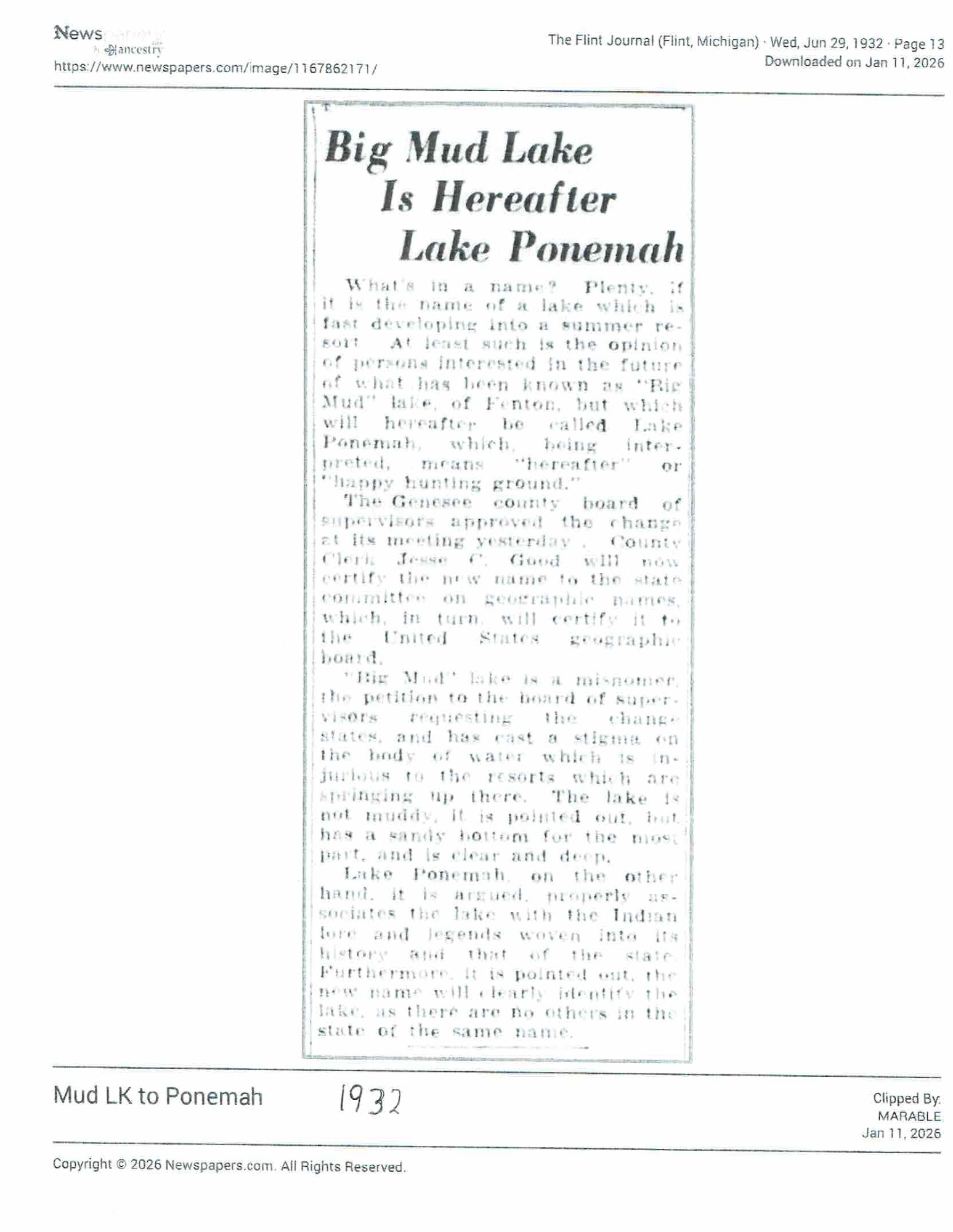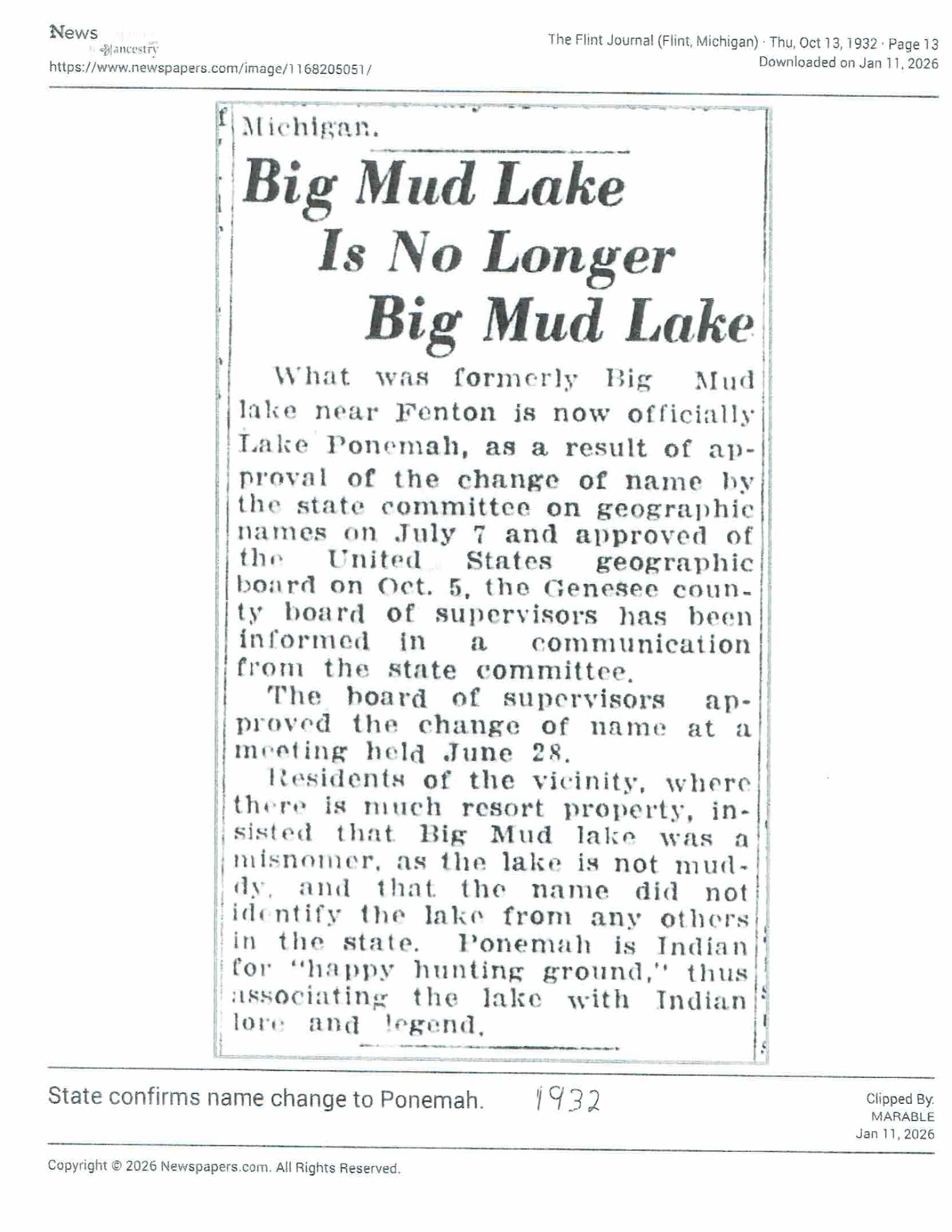Name change surprises Fenton Township lakeside community | Local | abc12.com