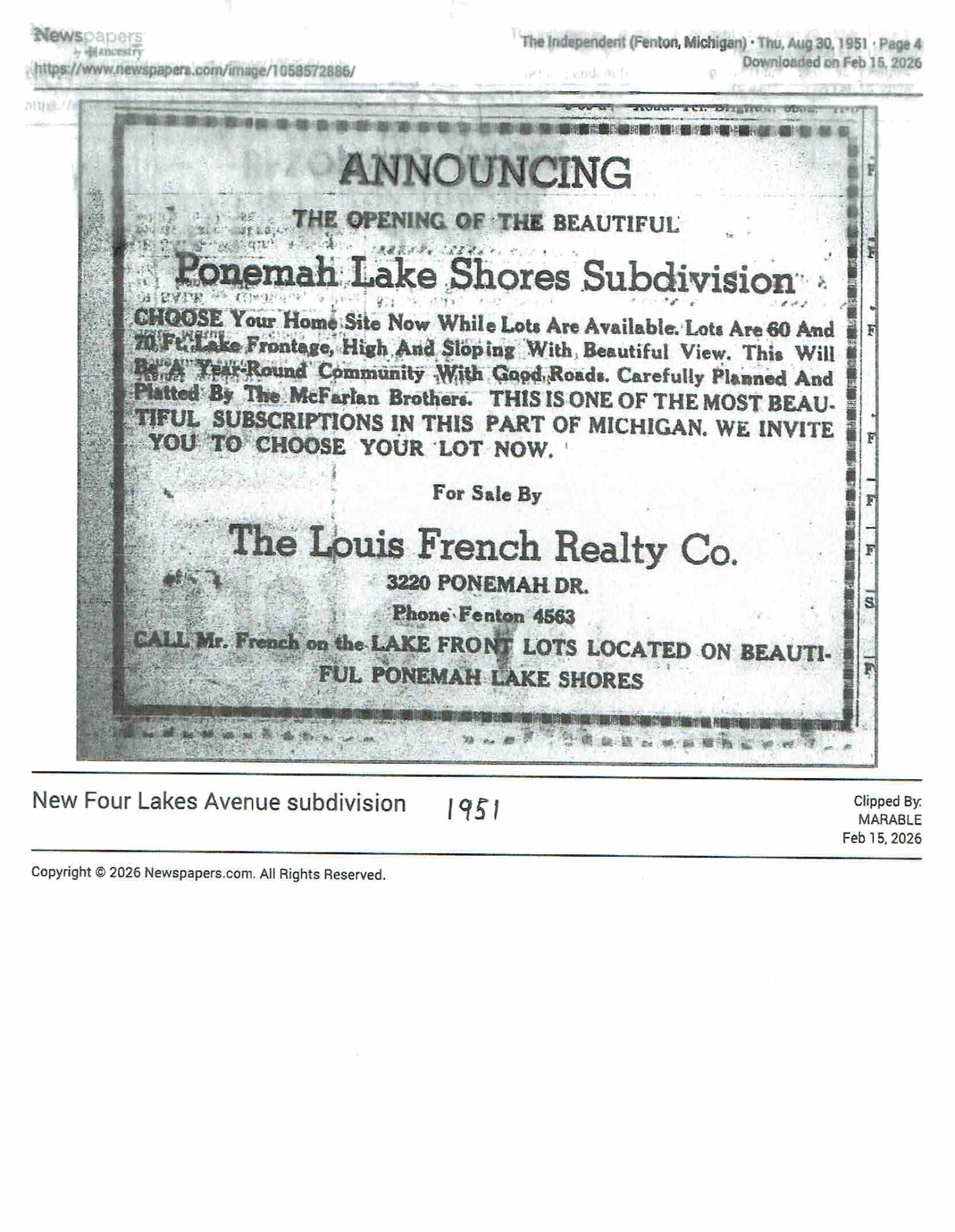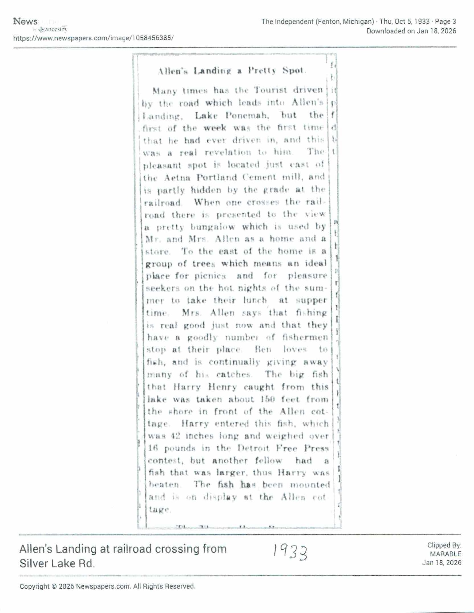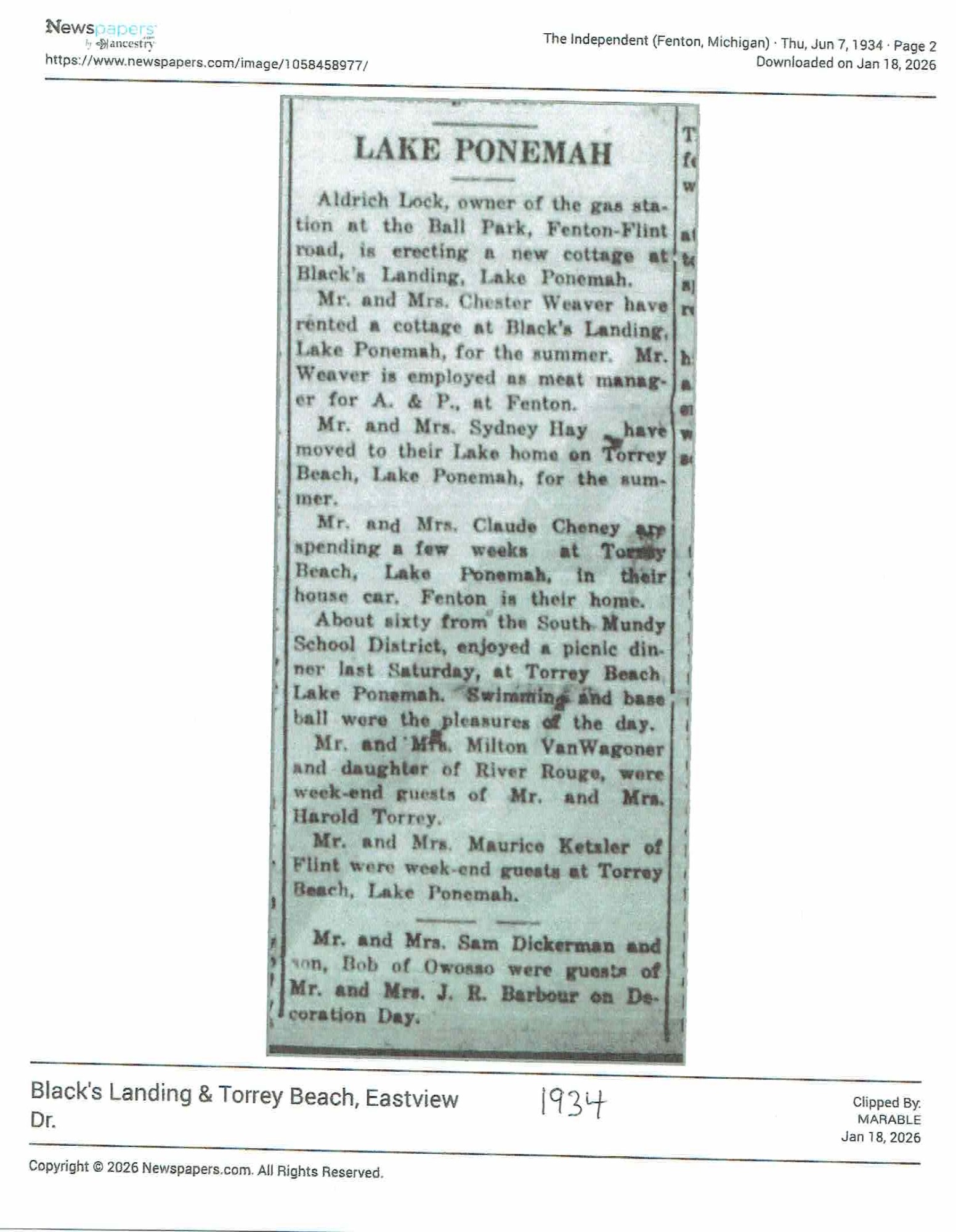 Name change surprises Fenton Township lakeside community | Local | abc12.com