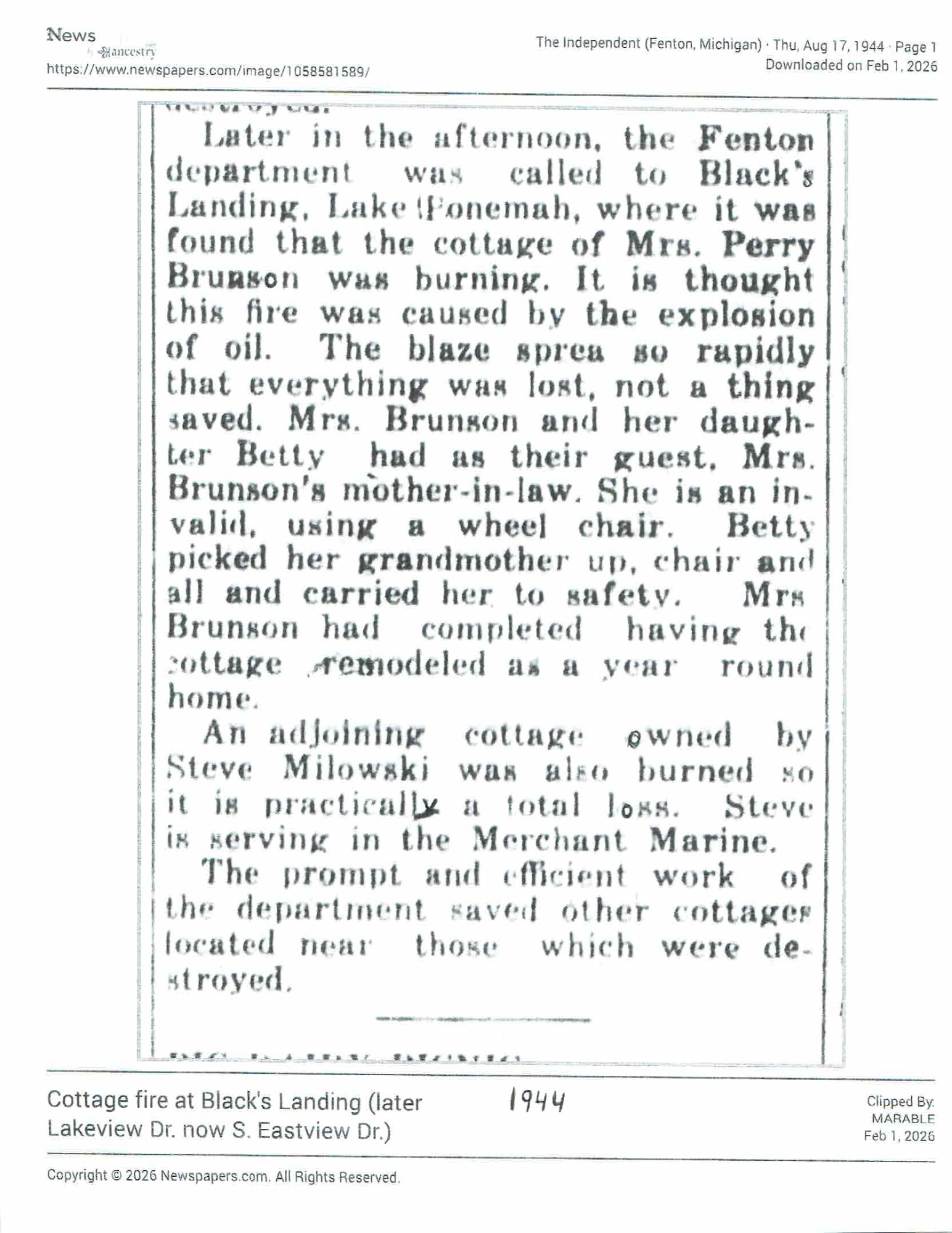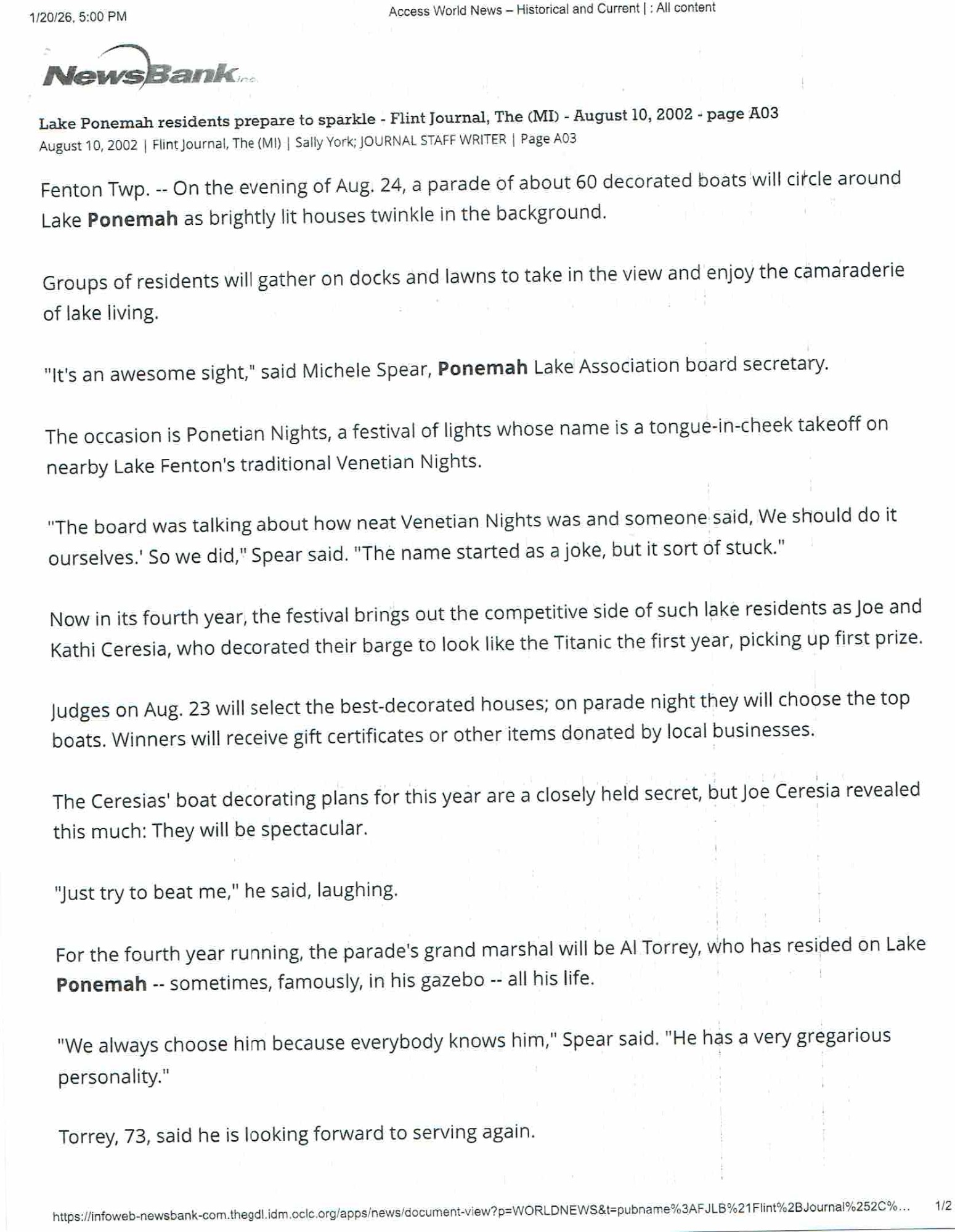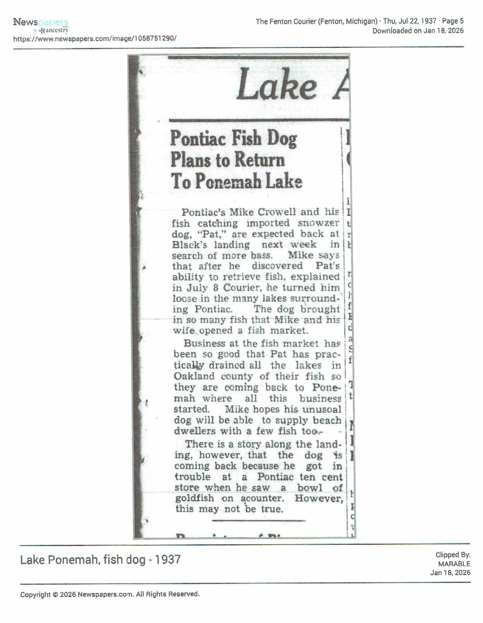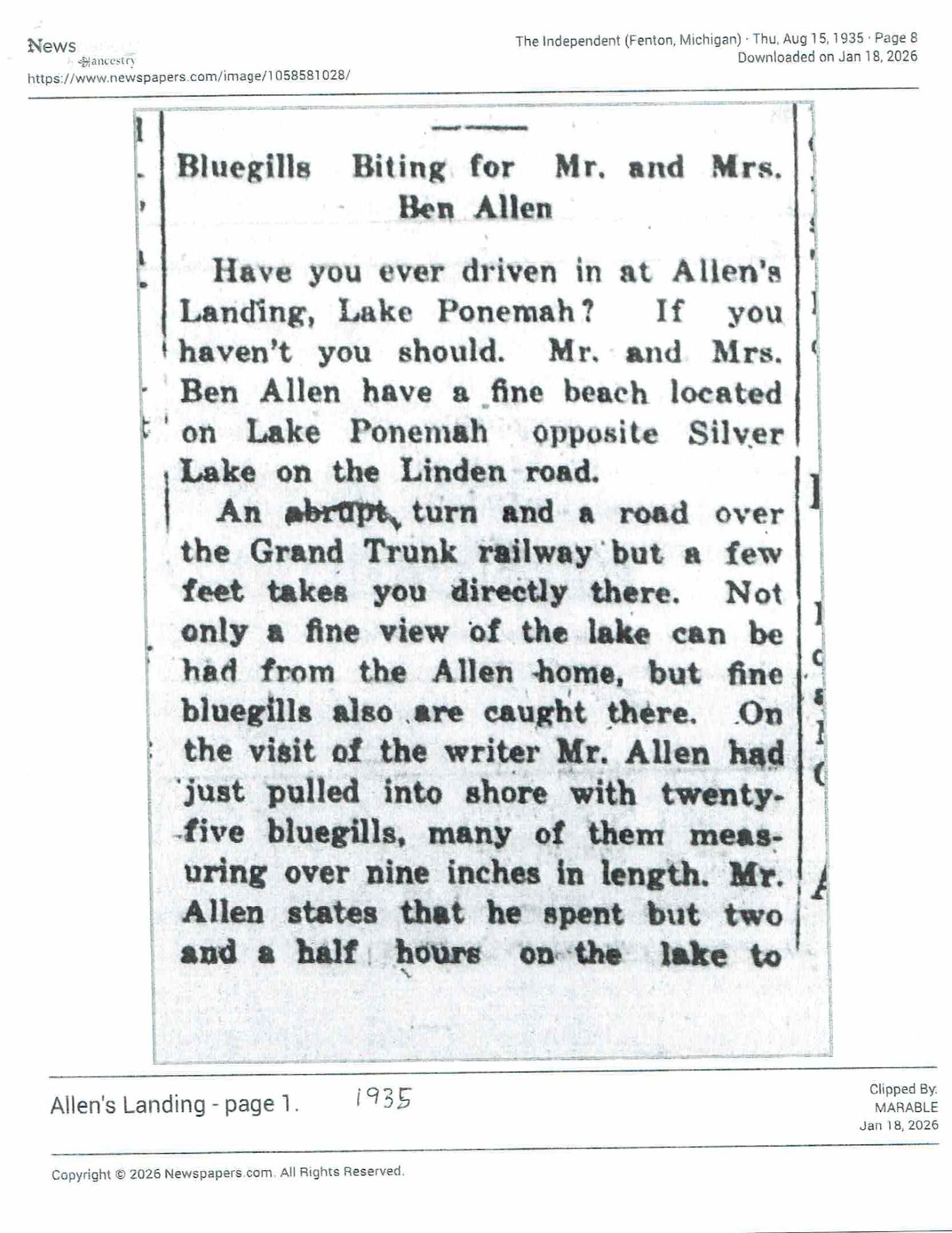Name change surprises Fenton Township lakeside community | Local | abc12.com